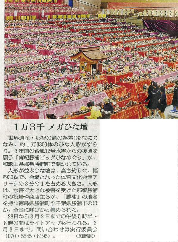 朝日新聞朝刊より「1万3千 メガひな壇」の記事をオススメします。