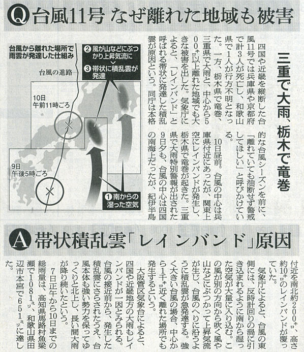 本日は朝日新聞朝刊より「台風11号 なぜ離れた地域も被害」の記事をオススメします。