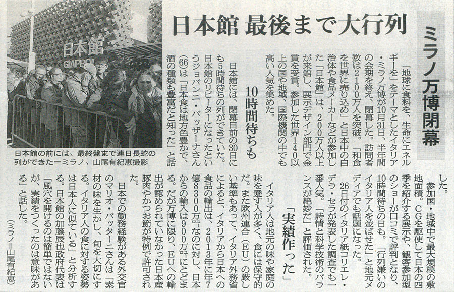 本日は朝日新聞朝刊から、「日本館 最後まで大行列」の記事をオススメします。