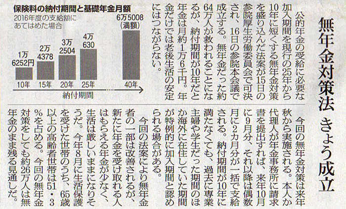 2016.11.16 ASA注目記事 カテゴリー: ピックアップ 本日は朝日新聞朝刊から、「無年金対策法 きょう成立(2016年11月16日版 [48481号] 第7面)」の記事をオススメします。 2016年11月16日