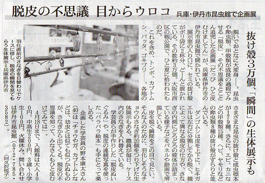 本日は朝日新聞朝刊から、「脱皮の不思議 目からウロコ(2016年2月22日版 [48220号] 第26面)」の記事をオススメします。