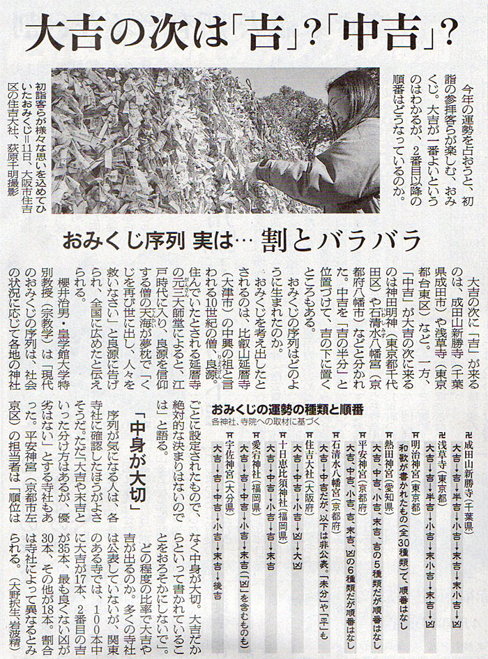 本日は朝日新聞朝刊から、「大吉の次は『吉』?『中吉』?(2017年1月12日版 [48536号] 第34面)」の記事をオススメします。