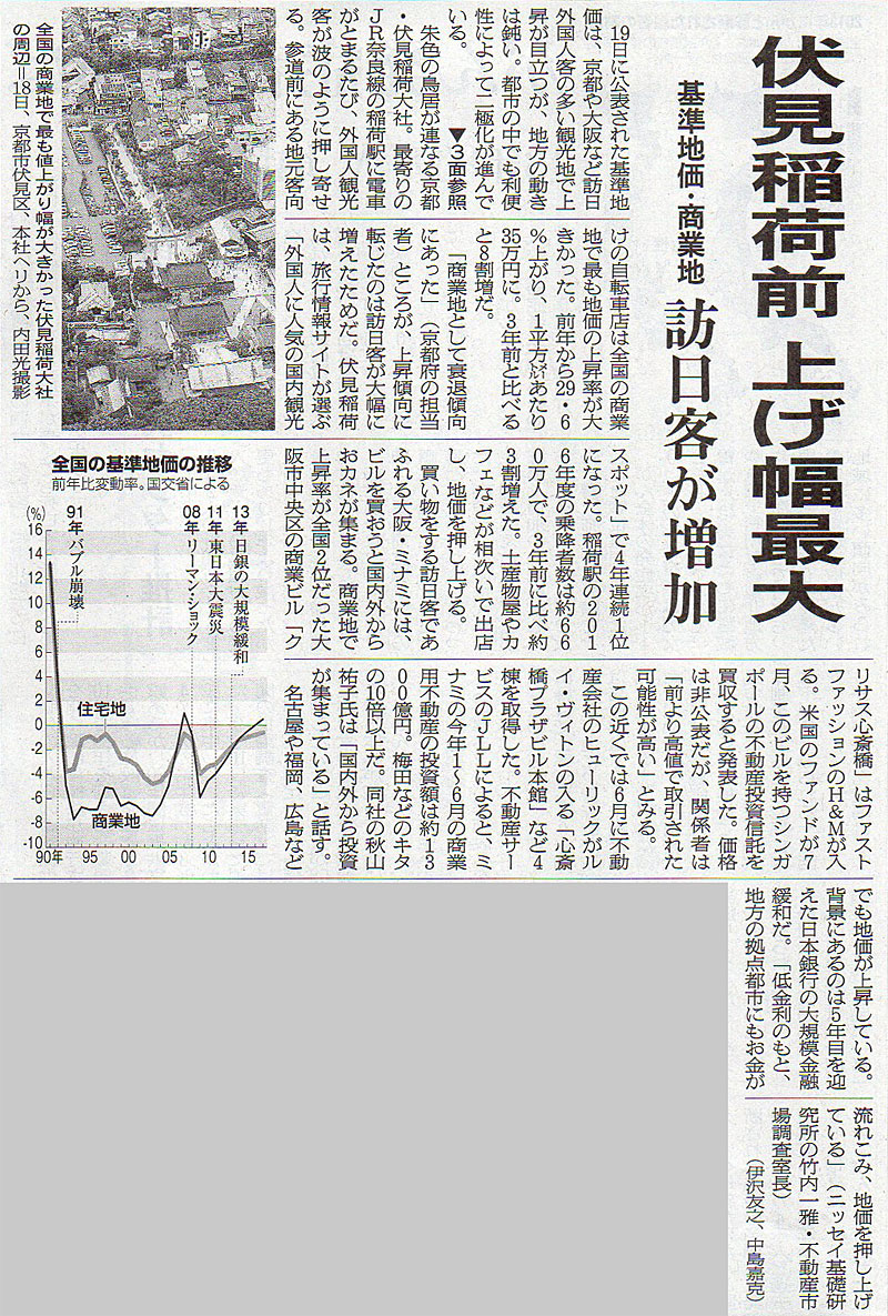 2017.9.20 ASA注目記事 カテゴリー: ピックアップ 本日は朝日新聞朝刊から、「伏見稲荷前 上げ幅最大(2017年9月20日版 [48781号] 第8面)」の記事をオススメします。 2017年9月20日