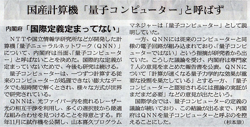 2018.3.24 ASA注目記事 カテゴリー: ピックアップ 本日は朝日新聞朝刊から、「国産計算機『量子コンピューター』と呼ばず(2018年3月24日版 [48961号] 6面)」の記事をオススメします。 2018年3月24日