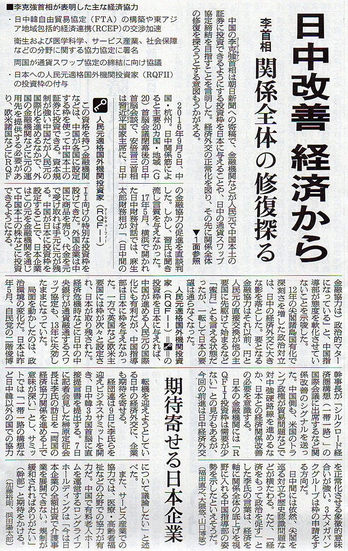 本日は朝日新聞朝刊から、「日中改善 経済から(2018年5月8日版 [49004号] 3面)」の記事をオススメします。
