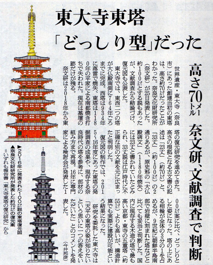 2024.4.26 スタッフ注目記事 カテゴリー: ピックアップ 本日は朝日新聞朝刊から、「東大寺東塔 『どっしり型』だった(2024年4月26日版 [51113] 27面)」の記事をオススメします. 2024年4月26日