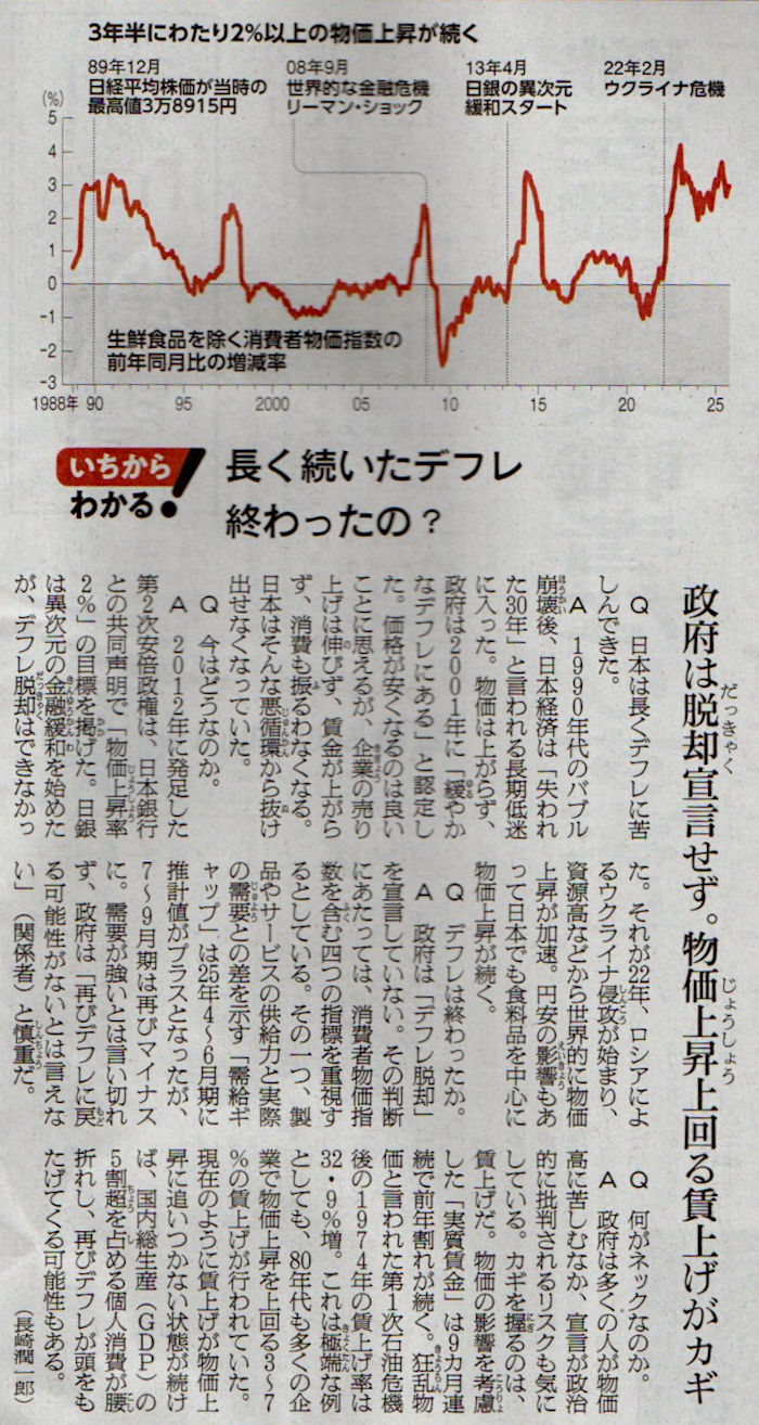 本日は朝日新聞朝刊から、「いちからわかる!」の「長く続いたデフレ 終わったの?(2025年12月1日版 [51678] 3面)」の記事をオススメします.