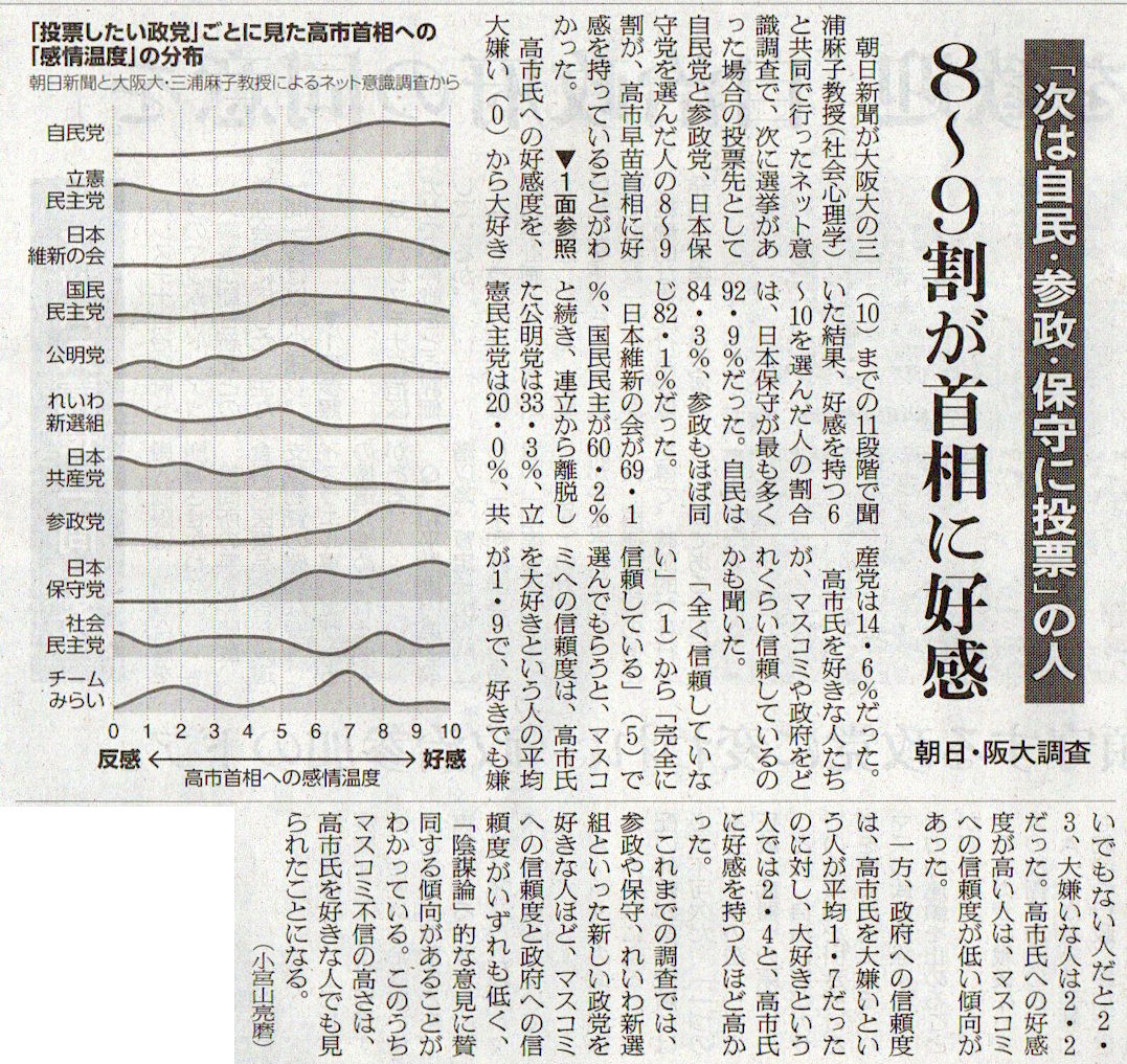 2025.12.29スタッフ注目記事 カテゴリー: ピックアップ 本日は朝日新聞朝刊から、「8~9割が首相に好感(2025年12月29日版 [51705] 3面)」の記事をオススメします. 2025年12月29日