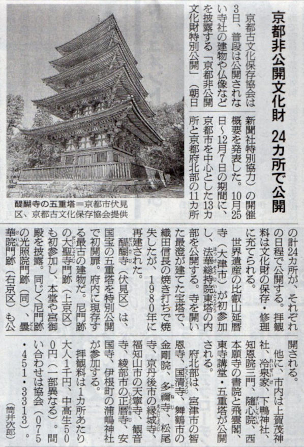 2025.9.4スタッフ注目記事 カテゴリー: ピックアップ 本日は朝日新聞朝刊から、「京都非公開文化財 24カ所で公開(2025年9月4日版 [51594] 25面)」の記事をオススメします. 2025年9月4日