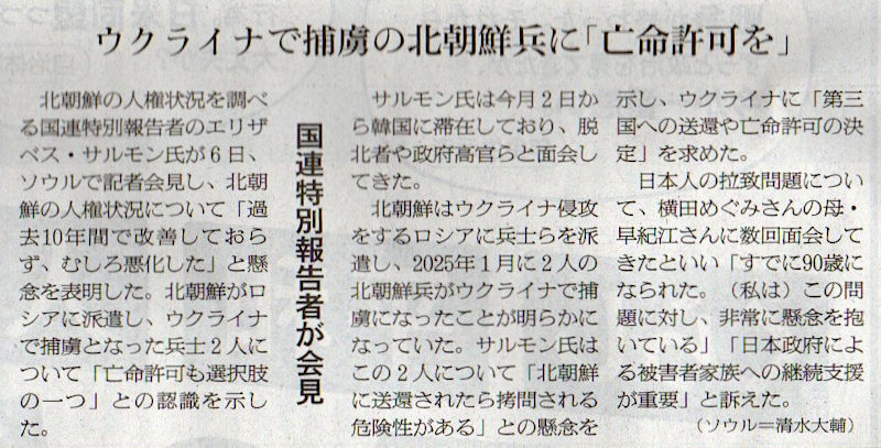 2026.2.7スタッフ注目記事 カテゴリー: ピックアップ 本日は朝日新聞朝刊から、「ウクライナで捕虜の北朝鮮兵に『亡命許可を』(2026年2月7日版 [51744] 7面)」の記事をオススメします. 2026年2月7日