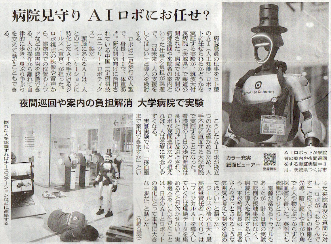 2026.4.2スタッフ注目記事 カテゴリー: ピックアップ 本日は朝日新聞朝刊から、「病院見守り AIロボにお任せ?(2026年4月2日版 [51795] 23面)」の記事をオススメします. 2026年4月2日